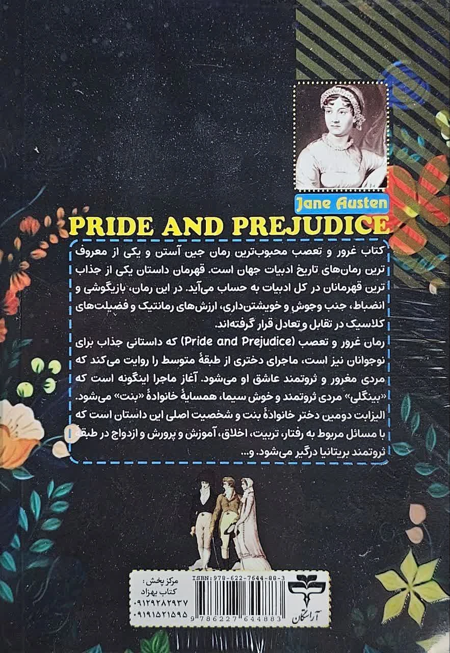 کتاب غرور و تعصب اثر برجسته جین اوستین، یکی از مشهورترین رمان‌های کلاسیک ادبیات جهان است که با نگاهی ظریف و طنزآمیز به روابط انسانی، جایگاه اجتماعی و داوری‌های شتاب‌زده می‌پردازد. این اثر با ترجمه روان فرزانه زمانی و از سوی انتشارات آراستگان با جلد شومیز یووی برجسته منتشر شده است.