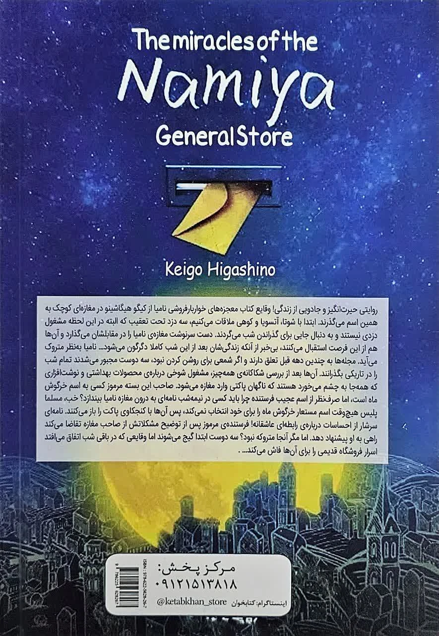کتاب معجزههای خواربارفروشی نامیا اثر کیگو هیگاشینو، رمانی دلنشین و تأملبرانگیز است که با ترکیبی از رازآلودگی، طنز و فلسفه زندگی، داستانی گرم و الهامبخش را روایت میکند. این اثر با ترجمه طیبه شیخی و از سوی انتشارات آراستگان منتشر شده است.